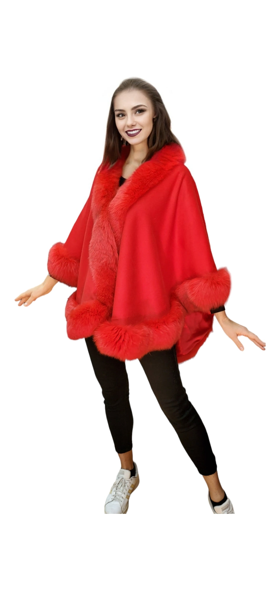 Elevate your style with our luxurious Cashmere Blend Cape, adorned with exquisite Fox Trim for women.