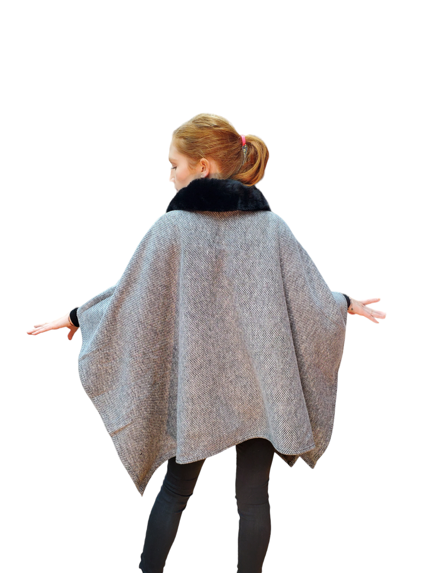 Indulge in elegance with our Ladies' Cape, featuring a luxurious faux fur collar.
