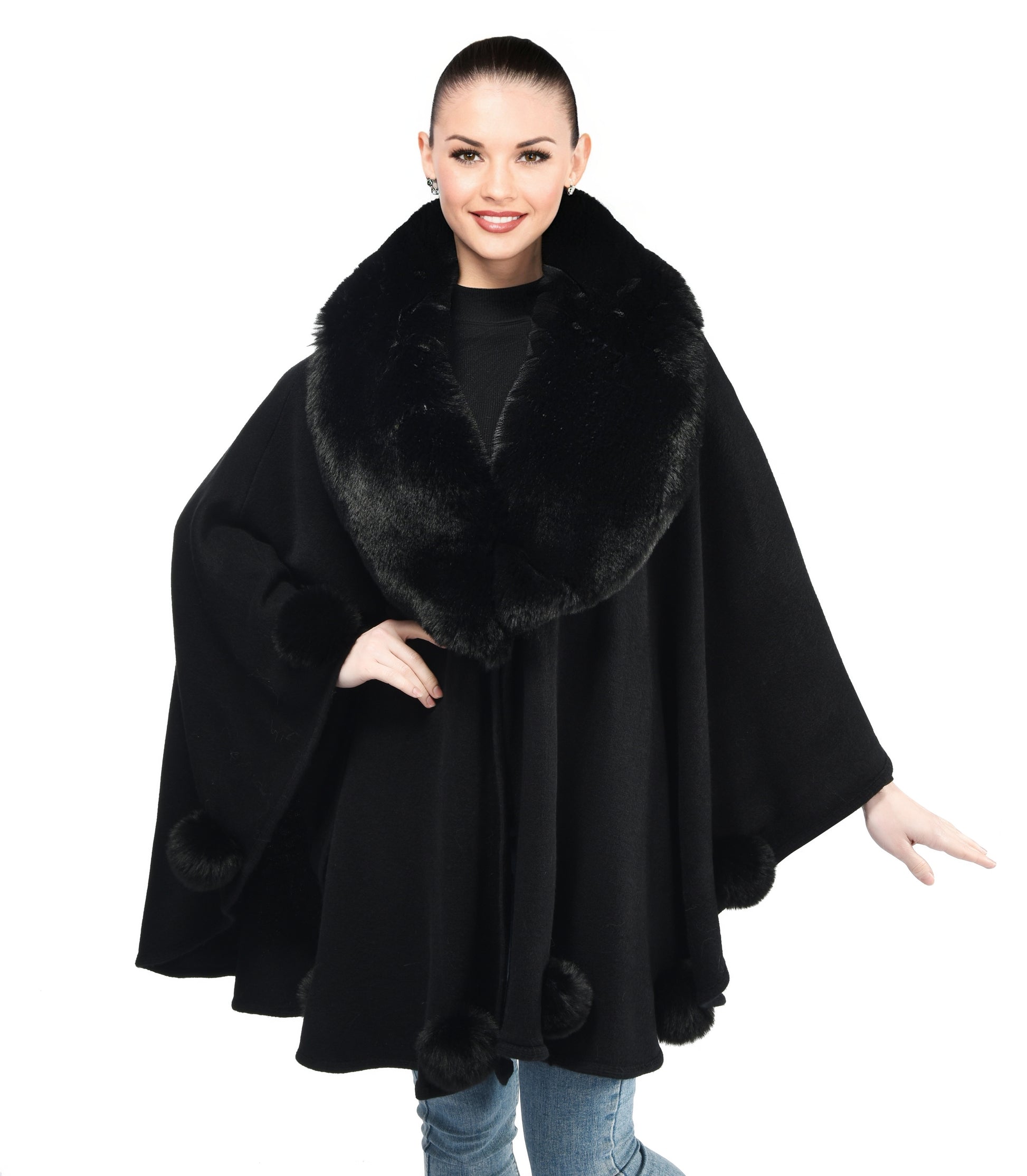 Experience the elegance and warmth of our Knitted Cape with Faux Fur trim, designed for ladies.