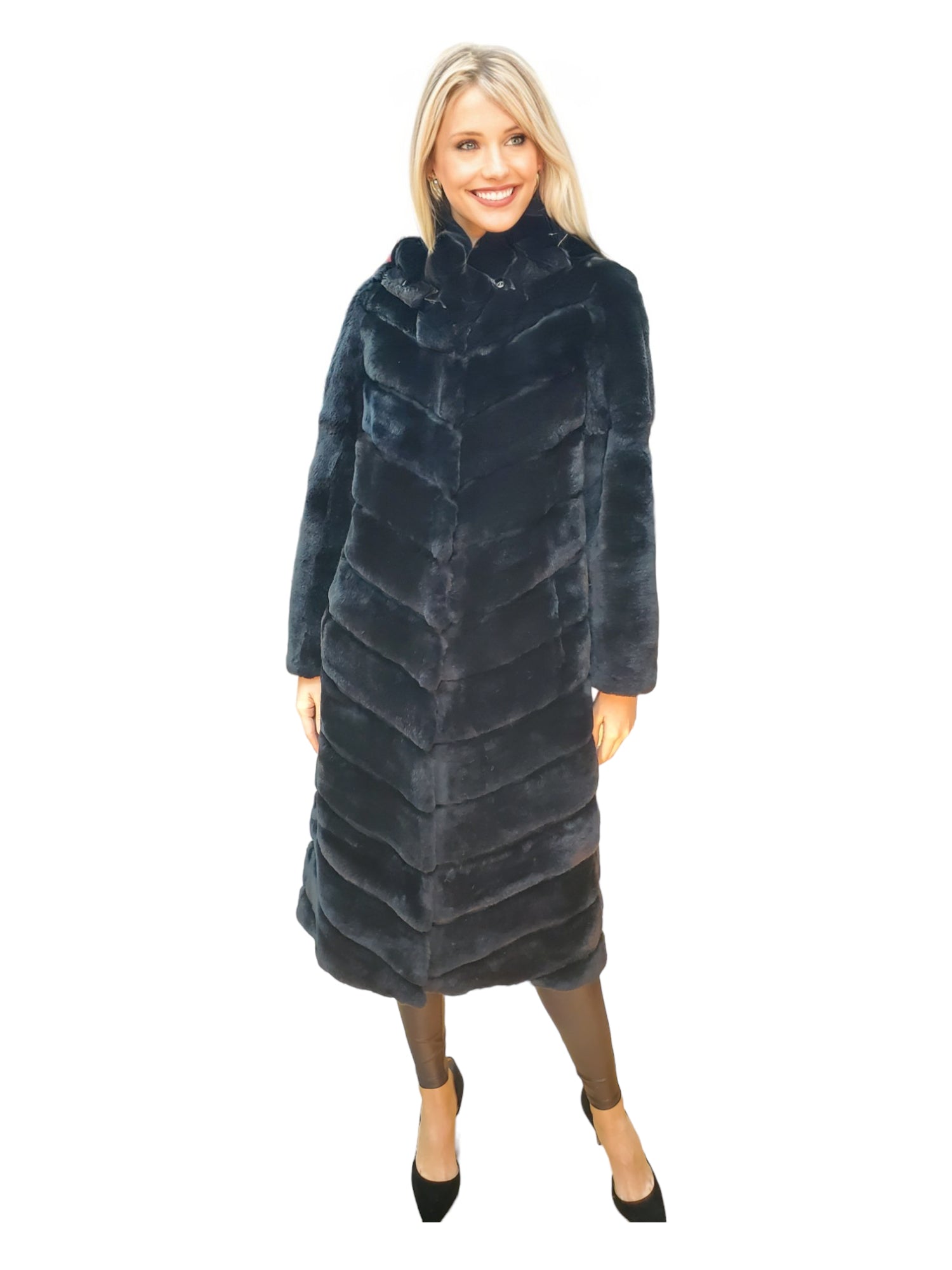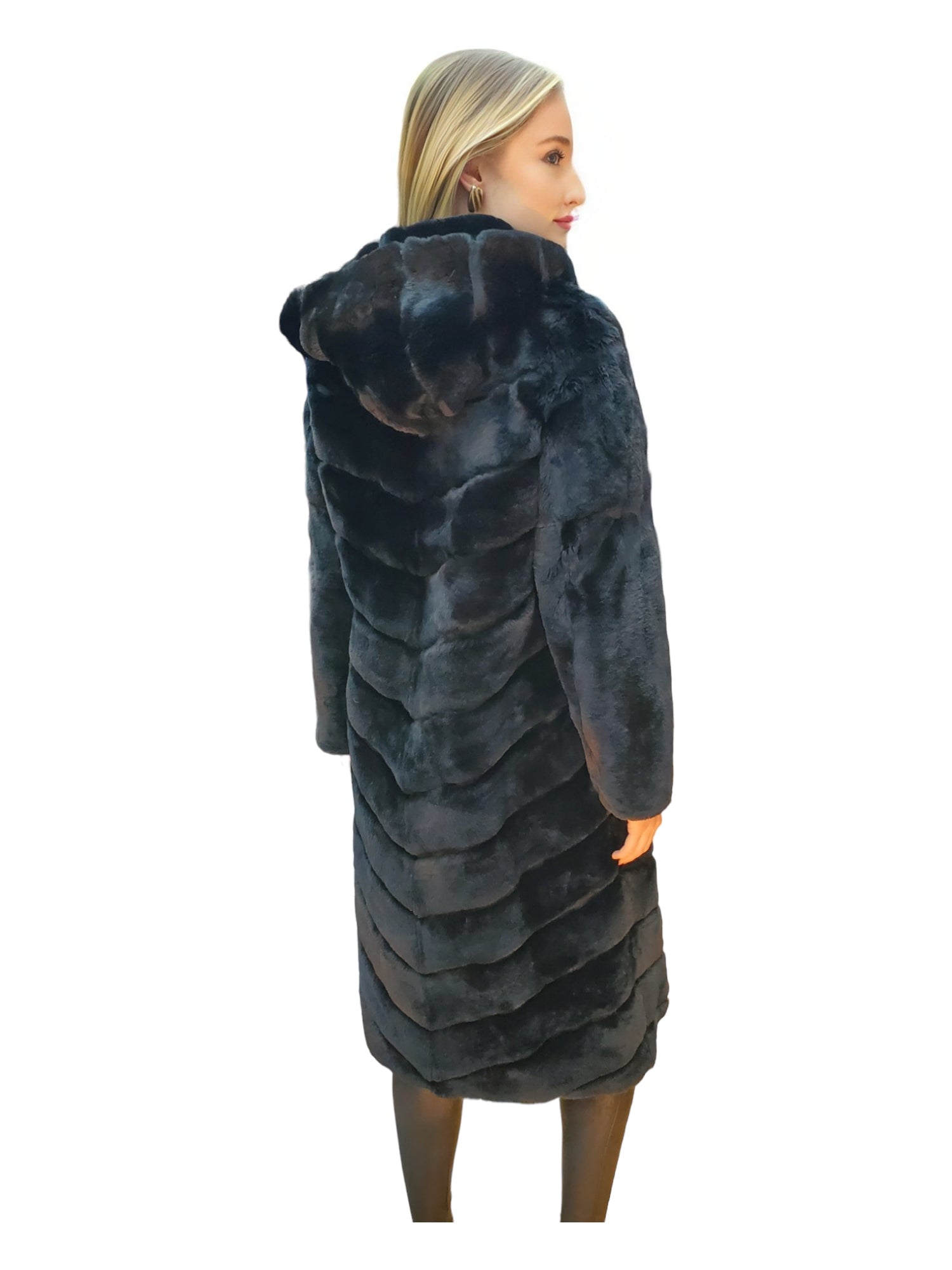 Experience elegance and comfort with the Sheard Rex Rabbit Coat, a stylish hooded companion for ladies.