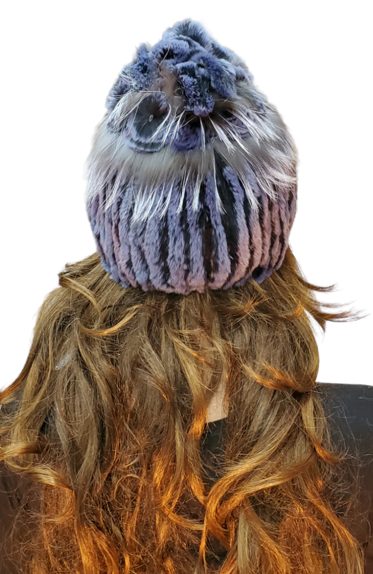 Indulge in cozy elegance with our Knitted Rex Rabbit hat, adorned with a stunning Fox Trim for ladies.