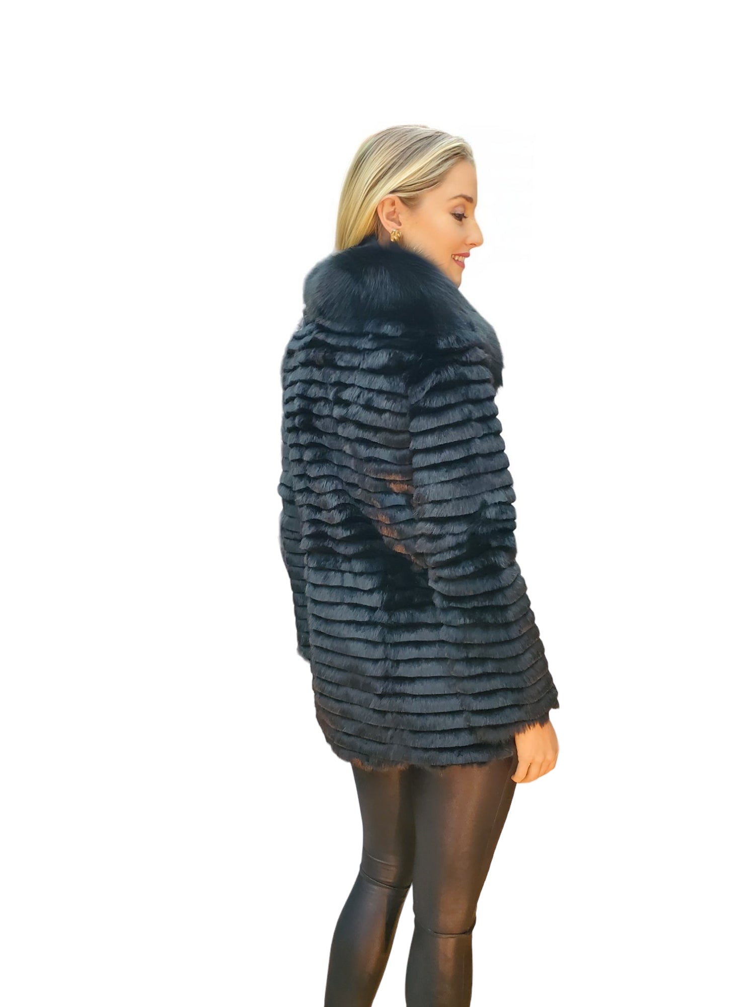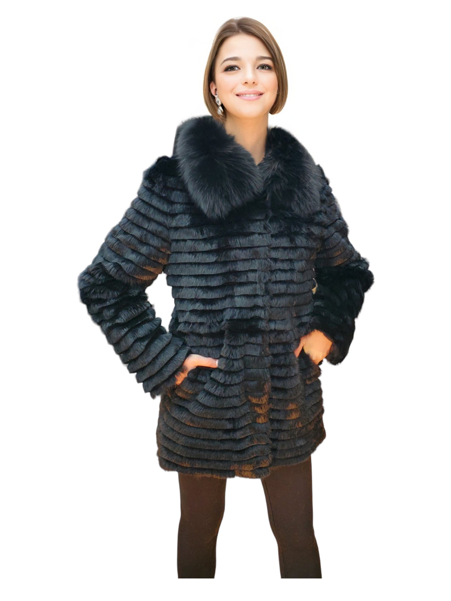 Step into elegance with our Rex Rabbit Jacket, featuring a luxurious Fox Collar for ladies.