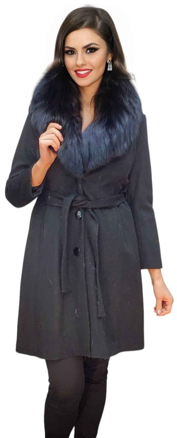 Elevate your style with our luxurious Cashmere Blend Stroller featuring a stunning Fox Collar. Exquisite elegance for modern ladies.
