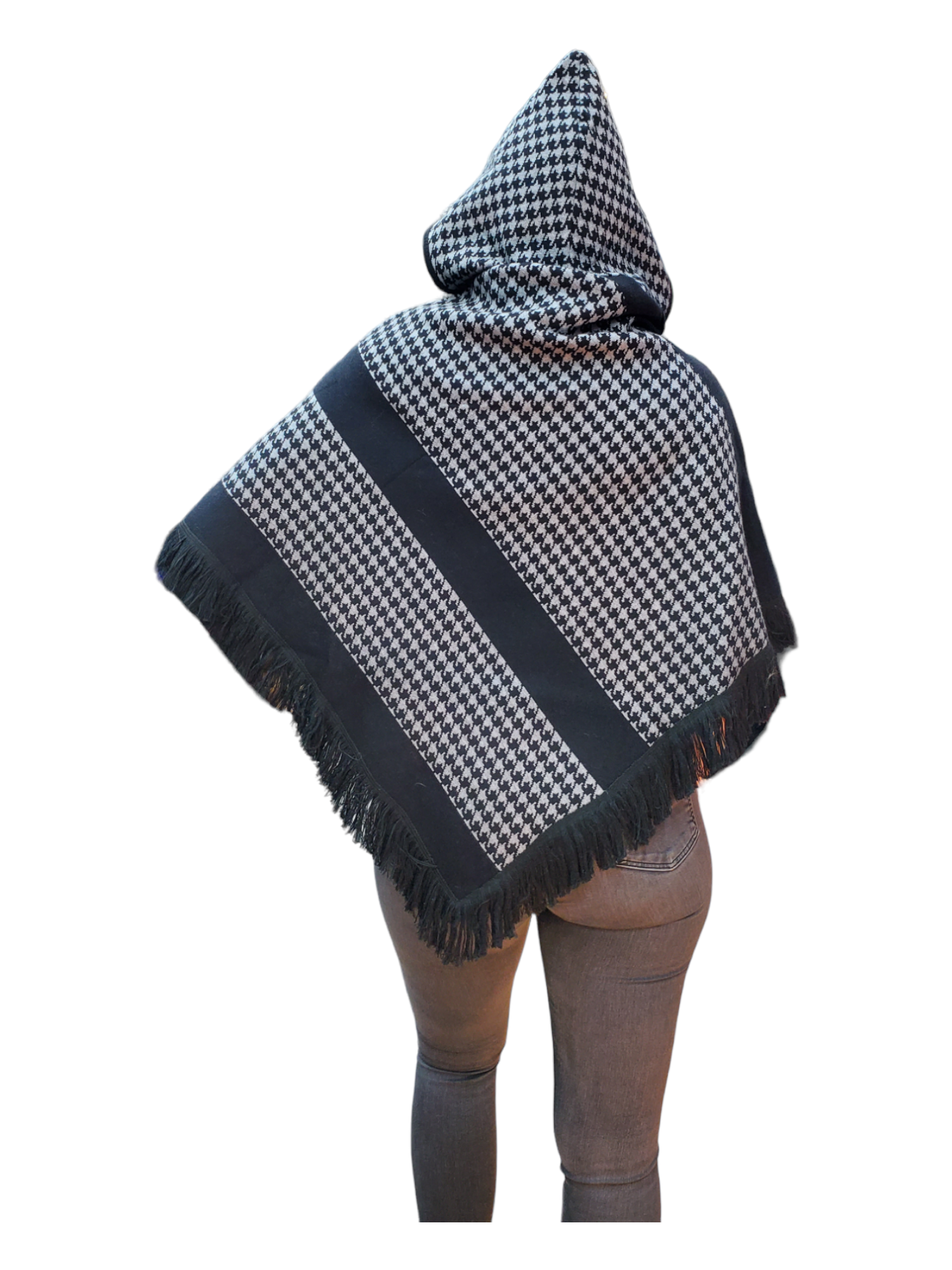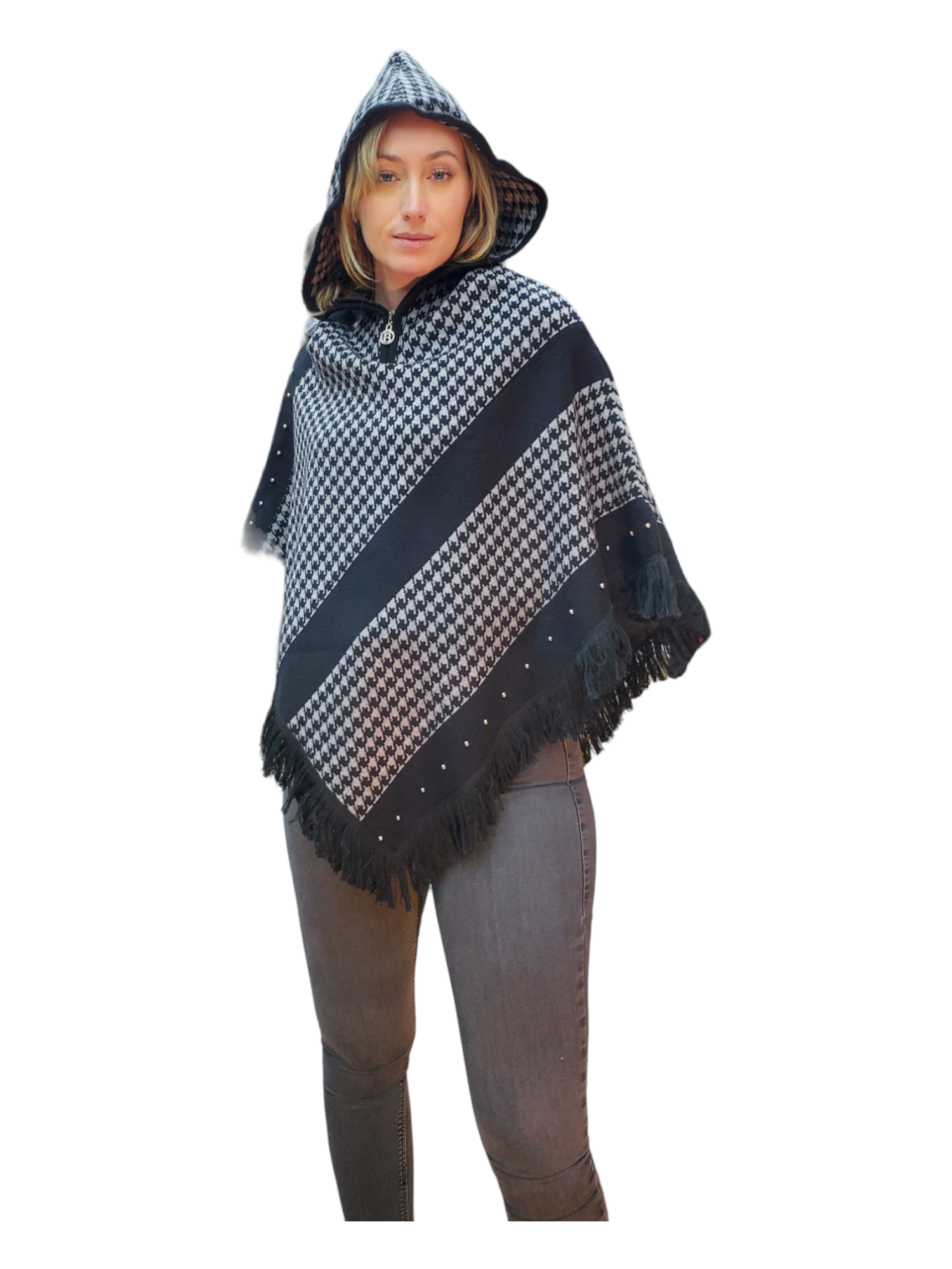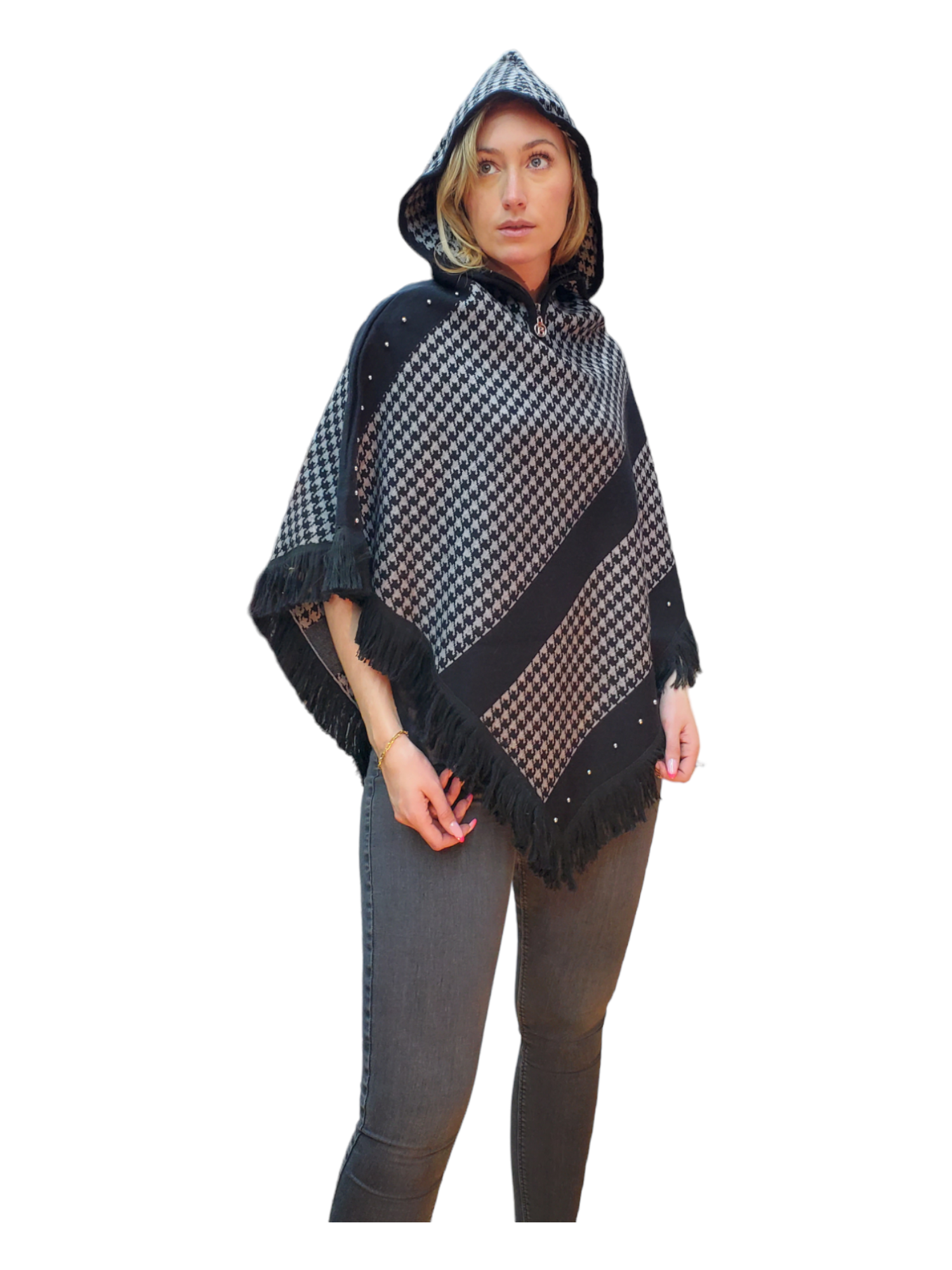 Wrap yourself in cozy elegance with our Viscose/Nylon Poncho, featuring a stylish hood for ladies.