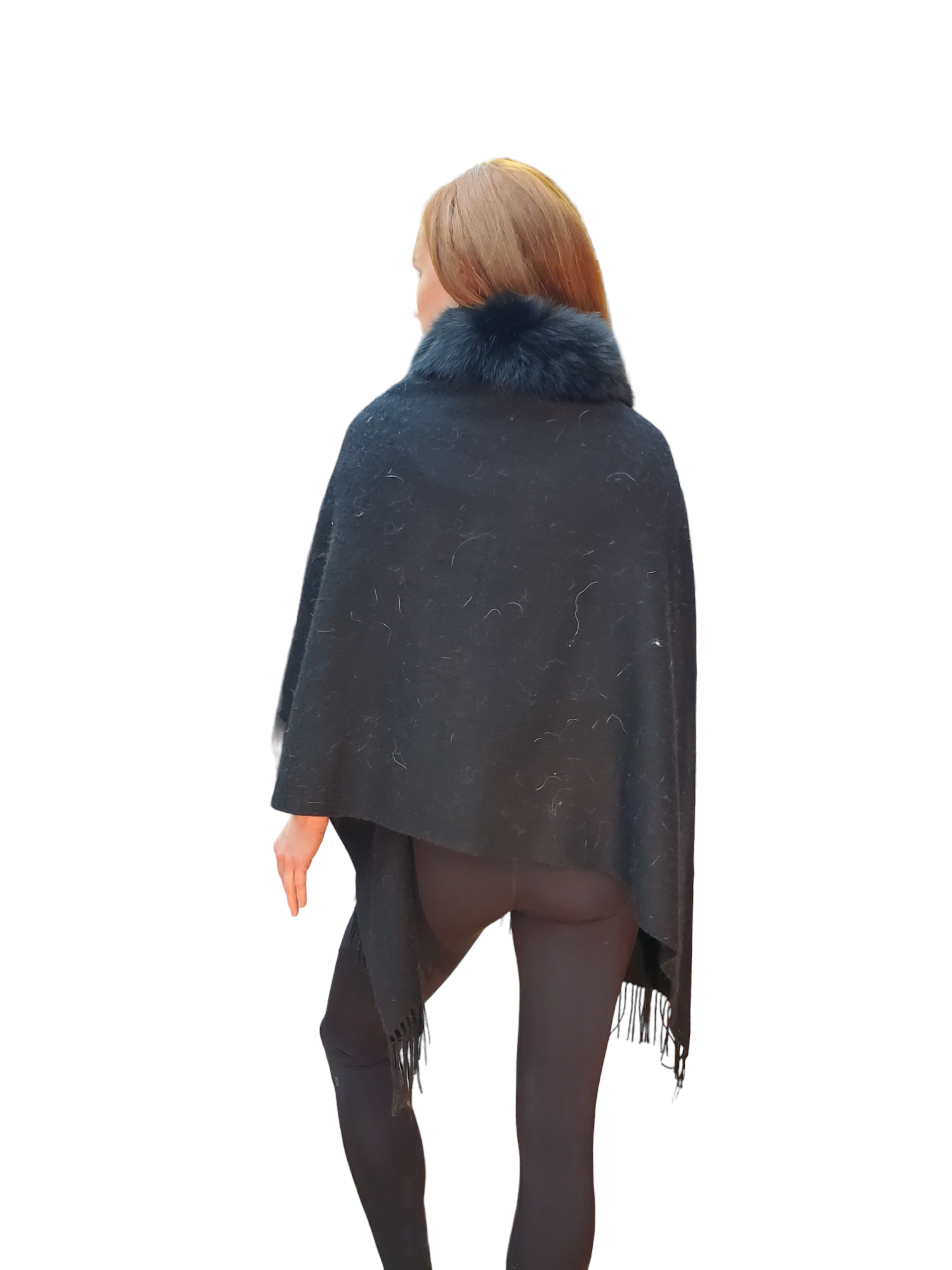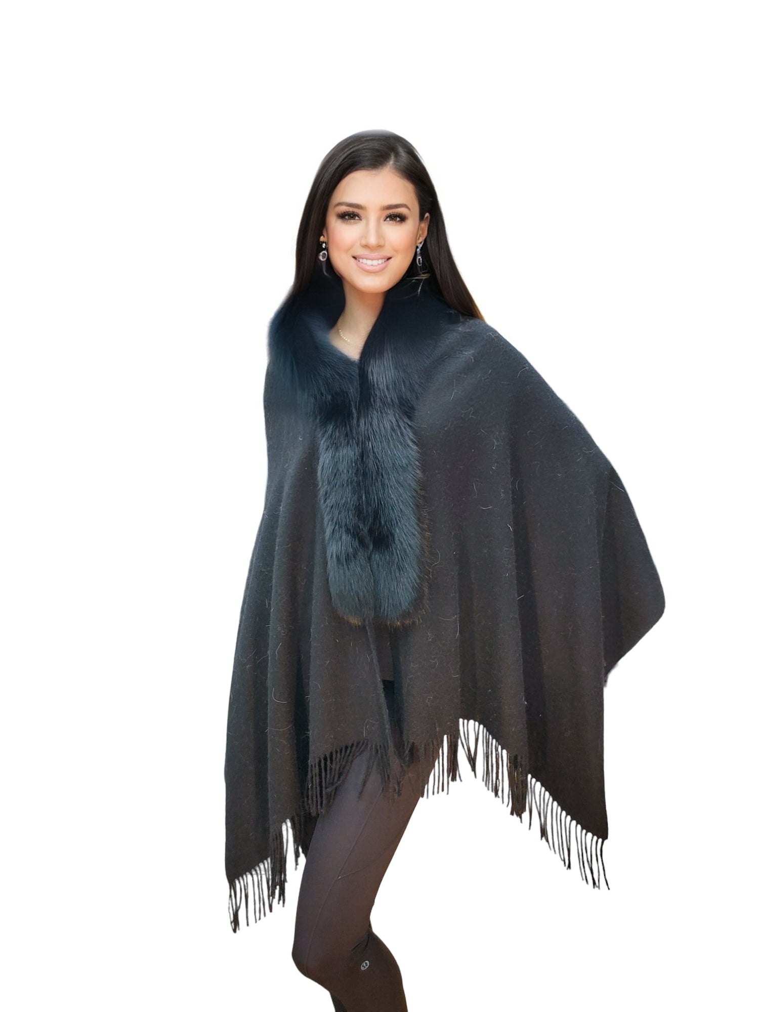 Experience elegance and warmth with our Wool Blend Shawl featuring a Fox Tuxedo Collar, perfect for stylish ladies.