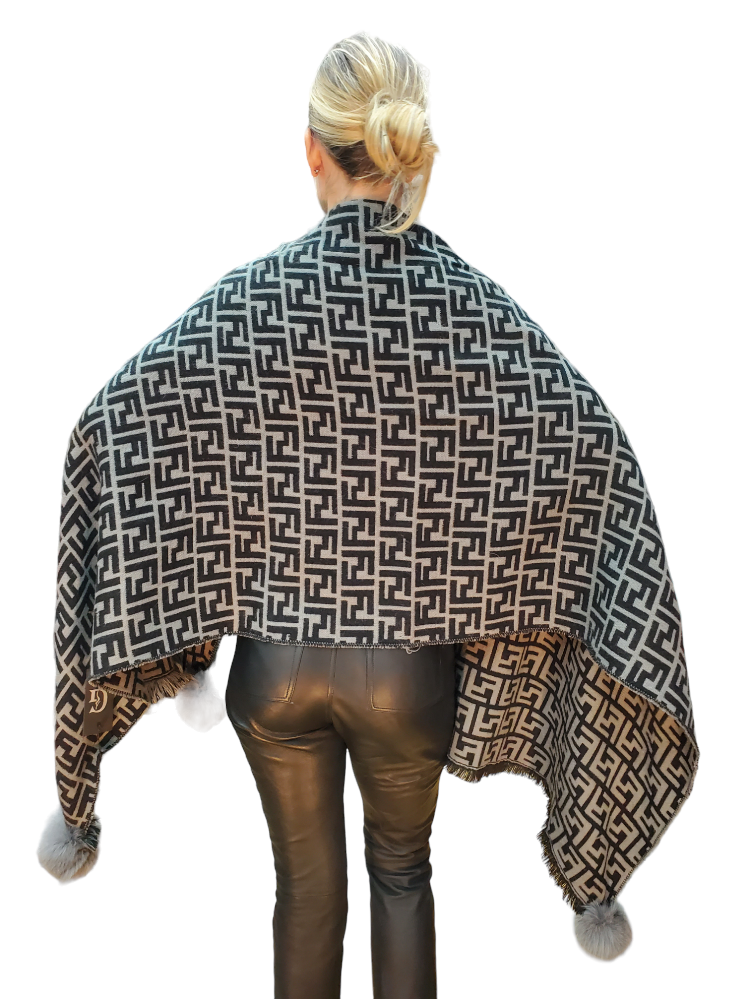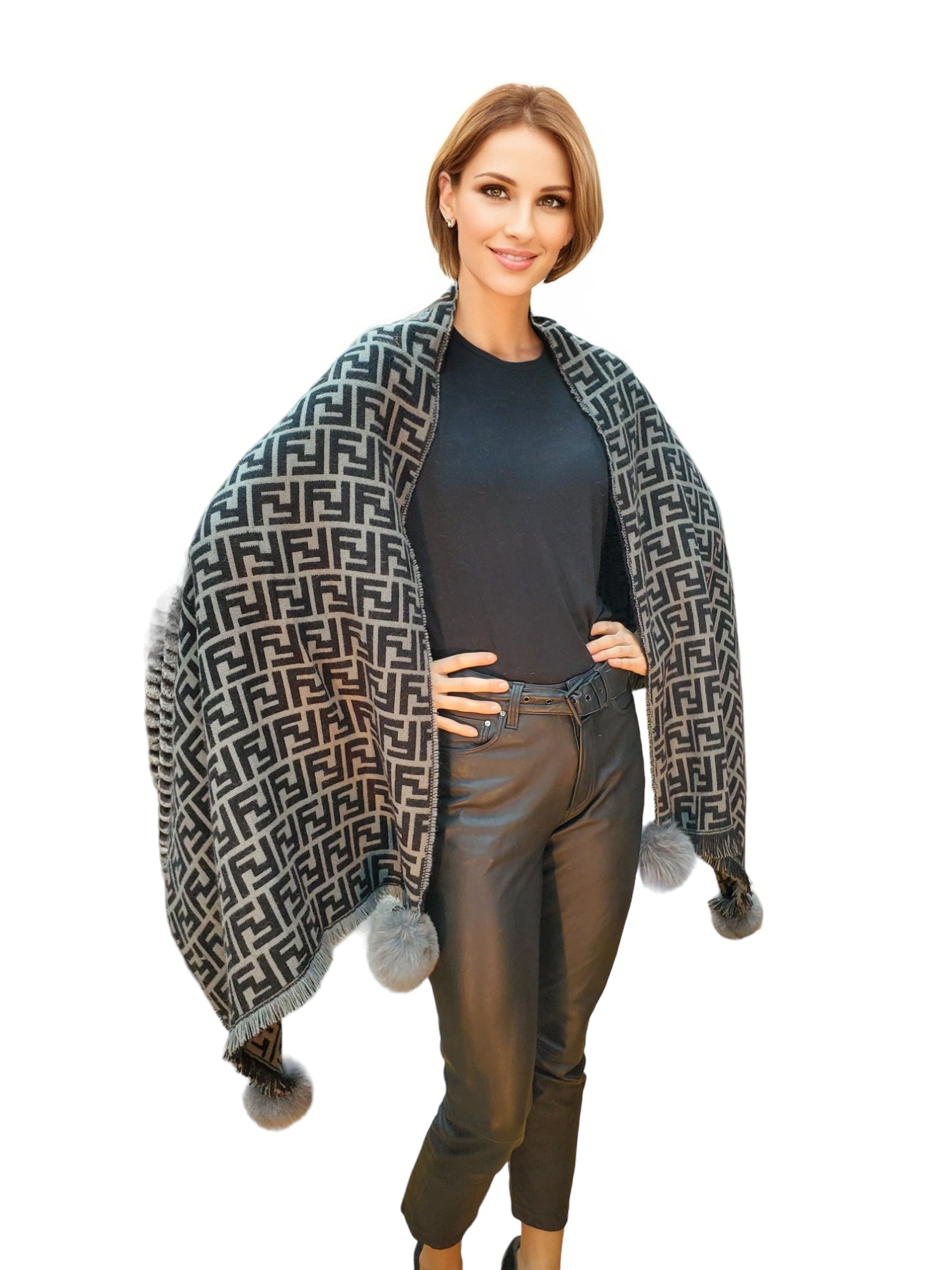 Wrap yourself in elegance with our Viscose/Polyester/Nylon Polyester Shawl featuring a luxurious Rex Rabbit Pom Pom for ladies.