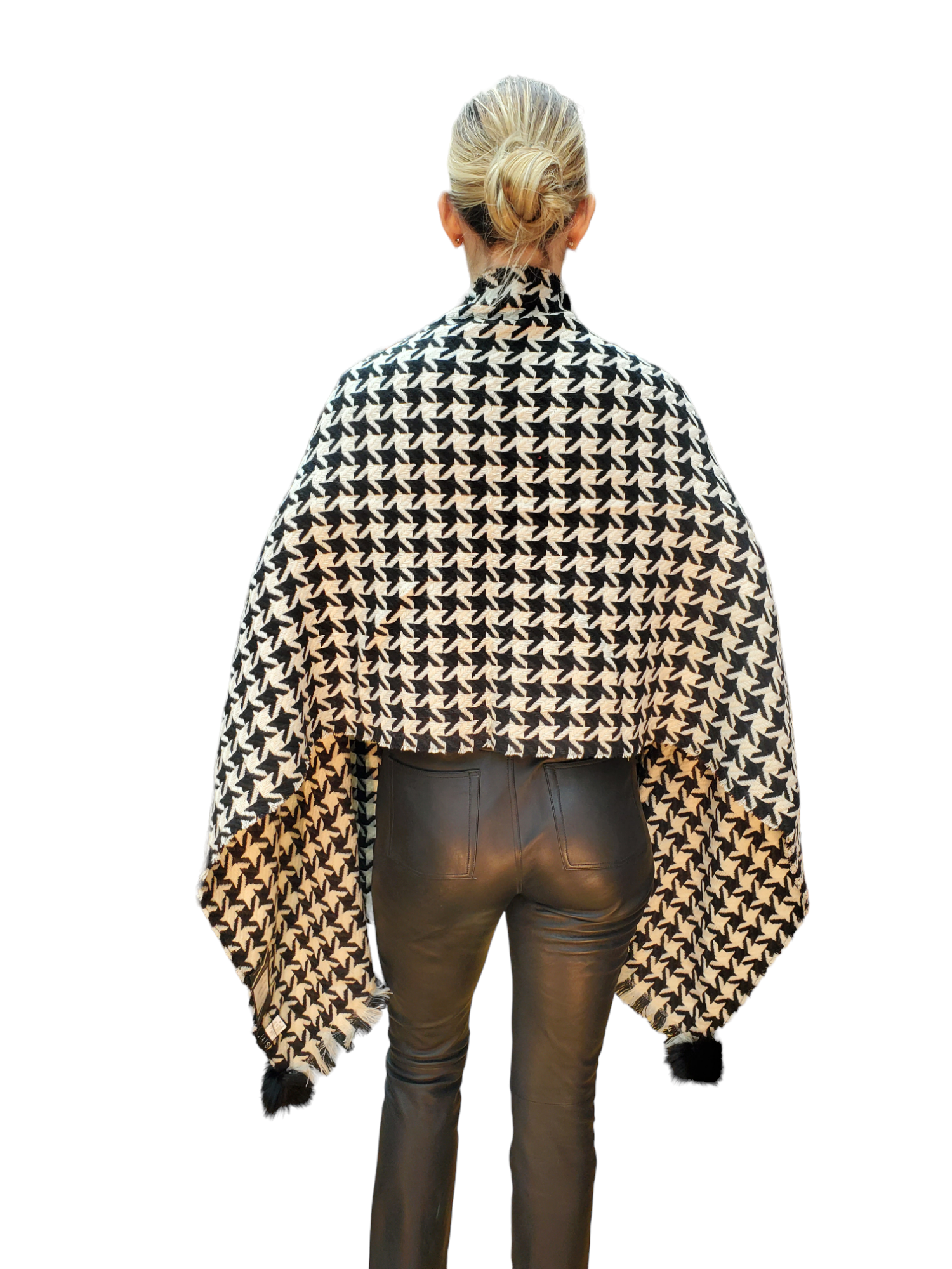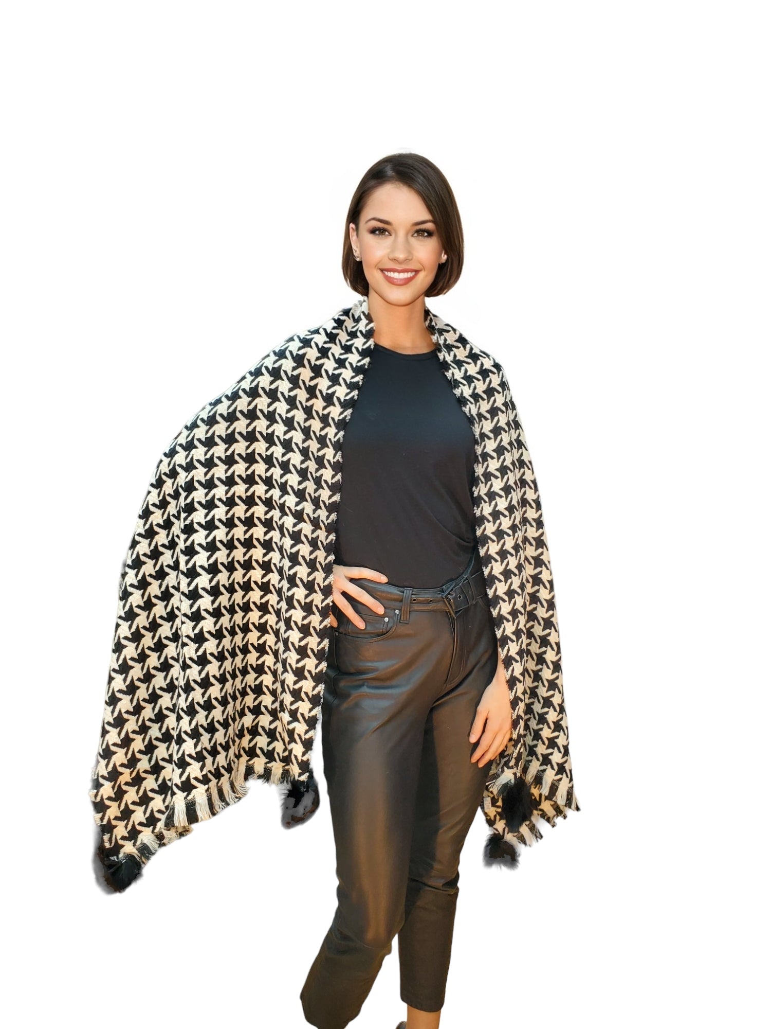 Polyester Shawl with Rex Rabbit Pom Pom