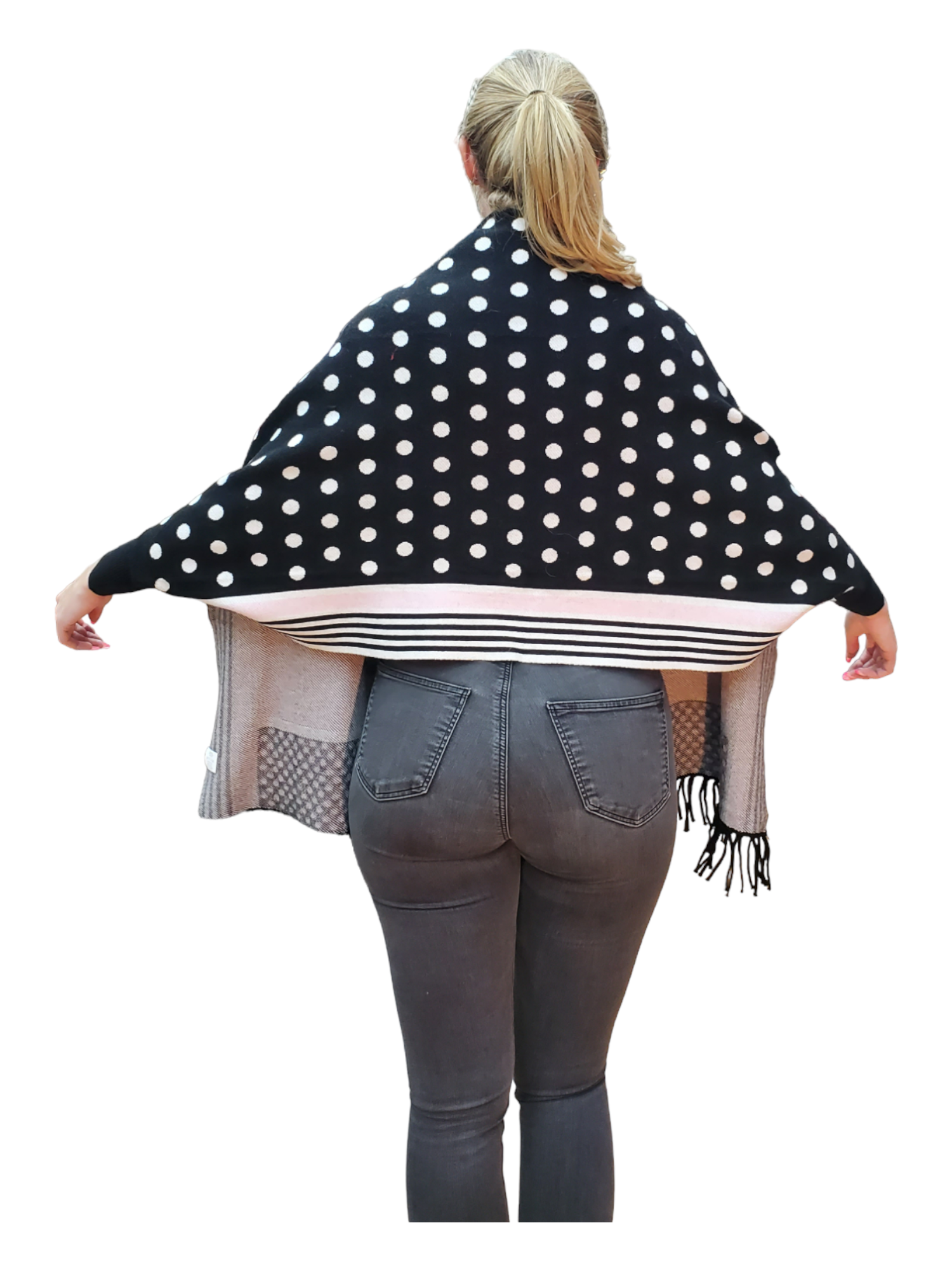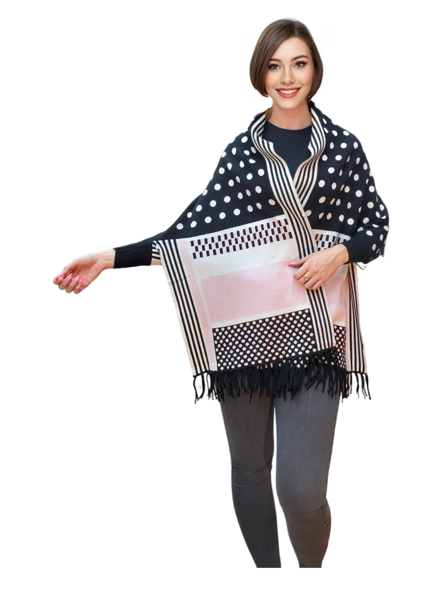 Discover ultimate comfort and style with our Viscose/Polyester/Nylon Knitted Shawl, featuring elegant sleeves for ladies.