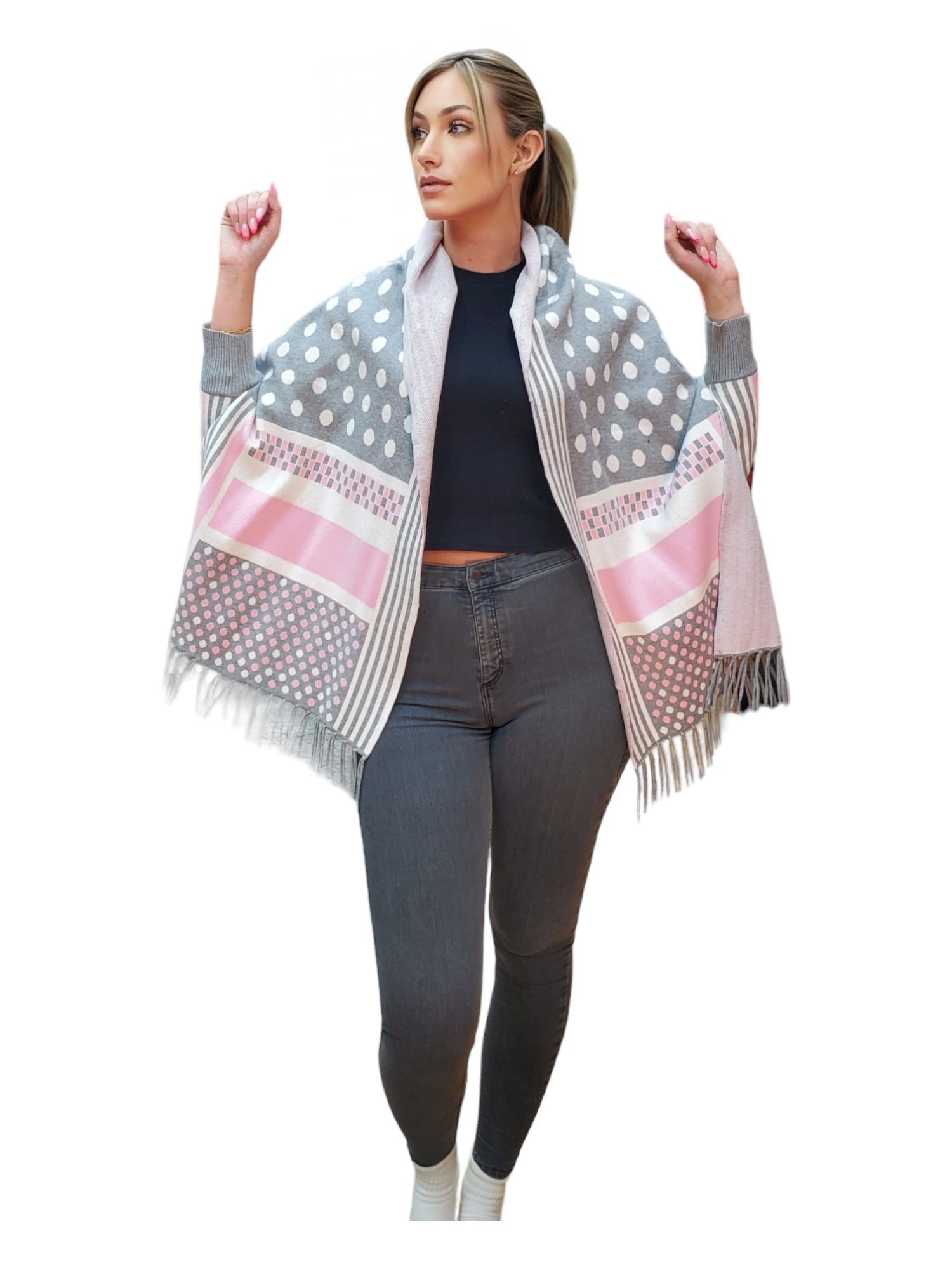 Discover ultimate comfort and style with our Viscose/Polyester/Nylon Knitted Shawl, featuring elegant sleeves for ladies.