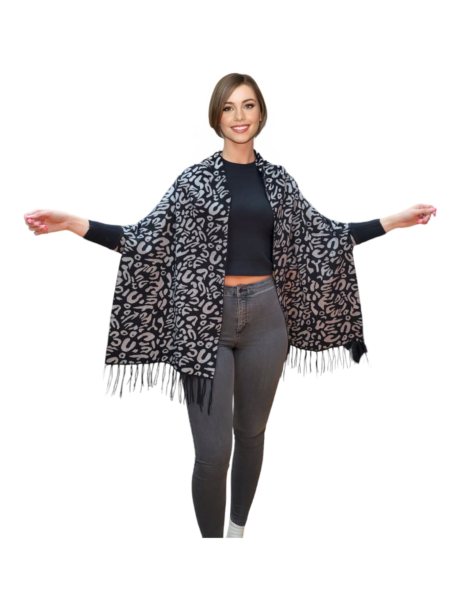 Experience comfort and style with our versatile Viscose/Polyester/Nylon Knitted Shawl with Sleeves for Ladies.