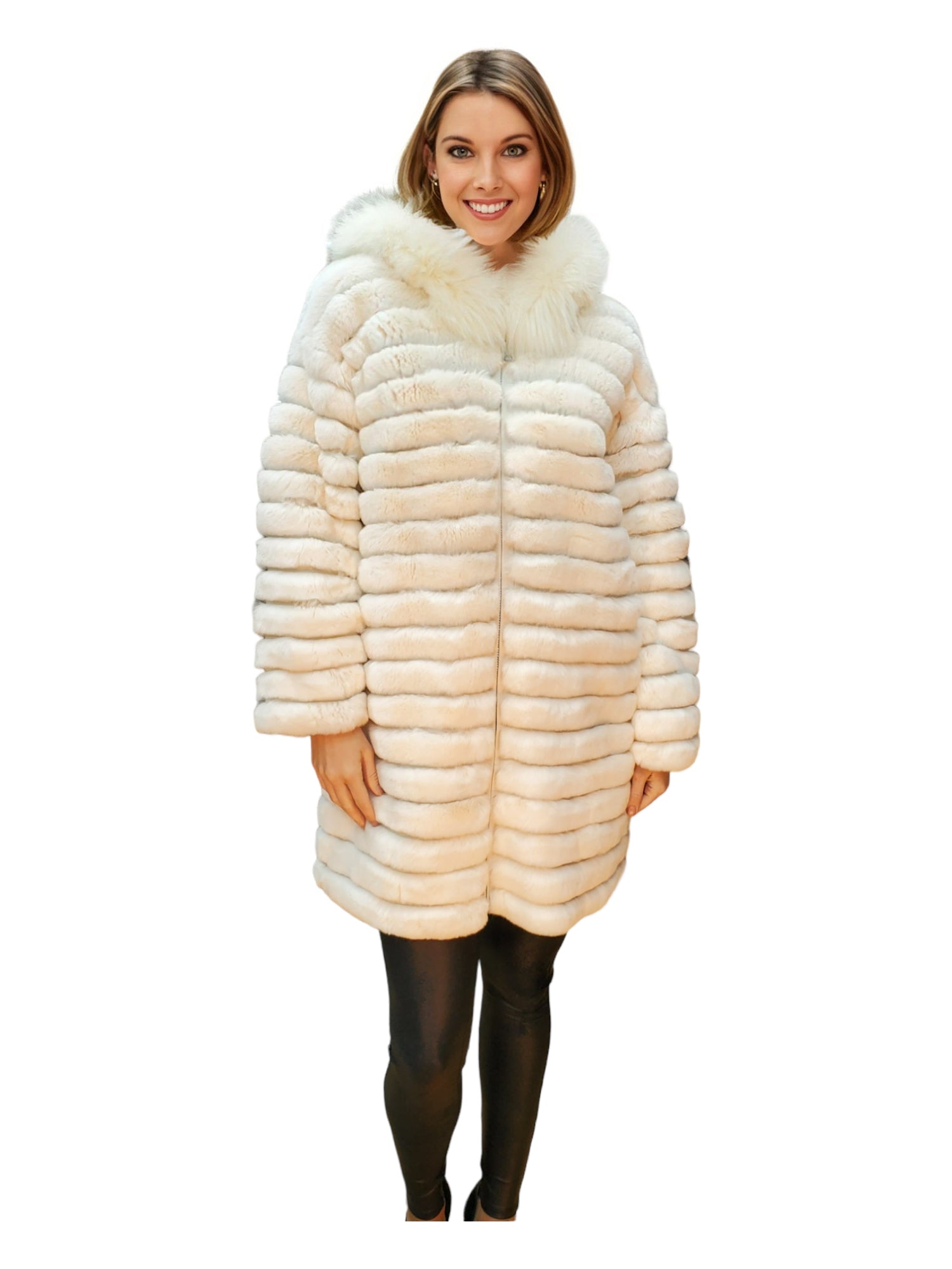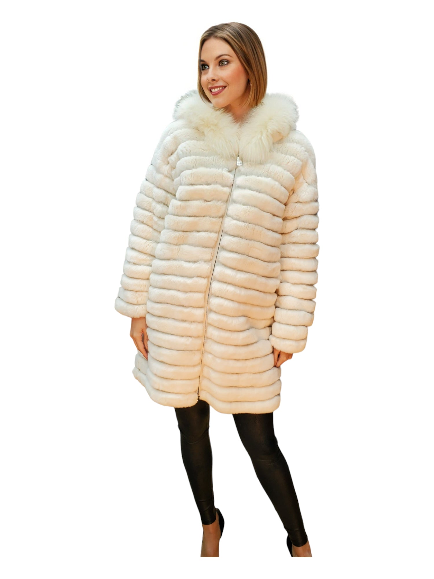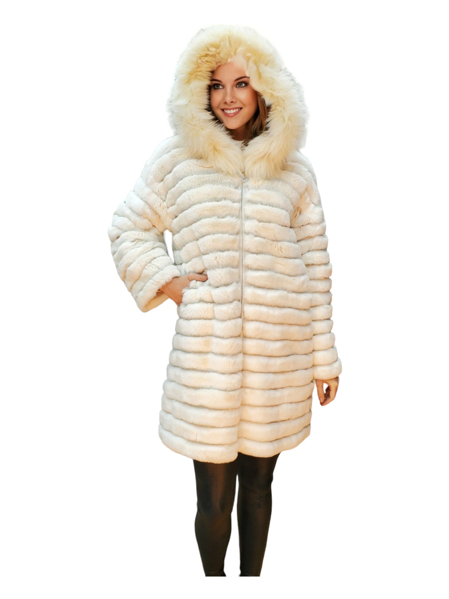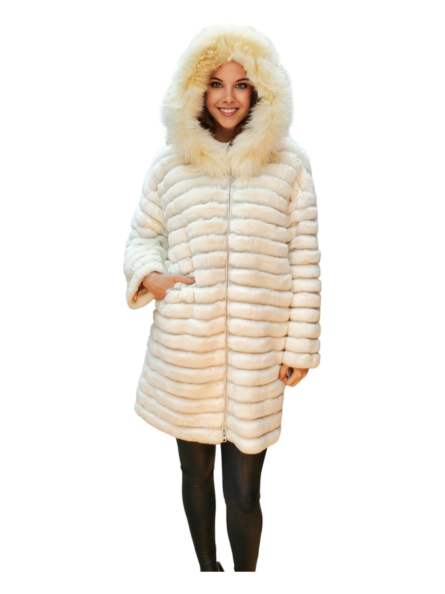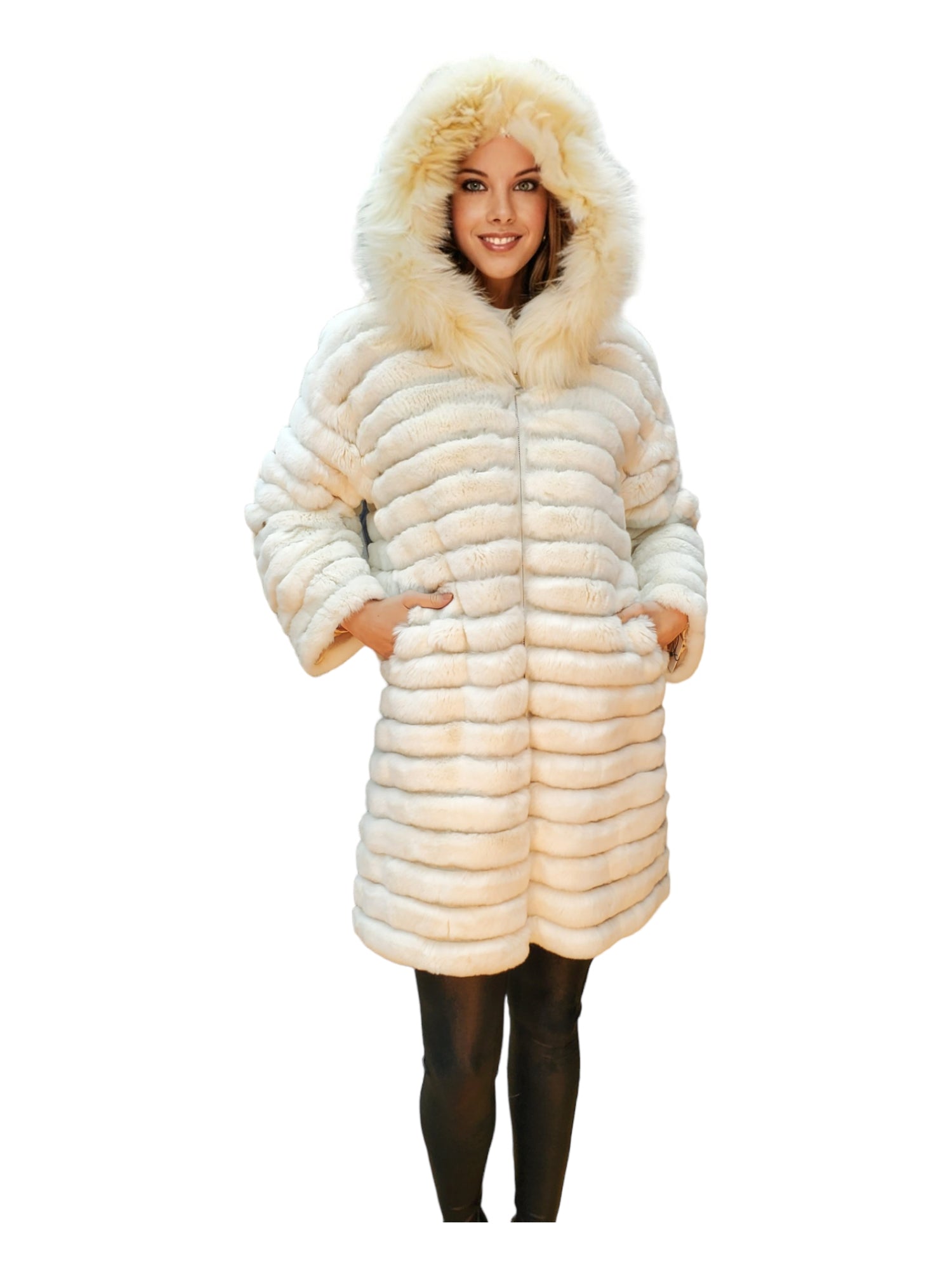 Indulge in luxury with the Sheard Rex Rabbit Stroller featuring a fox-trimmed hood for elegant ladies.