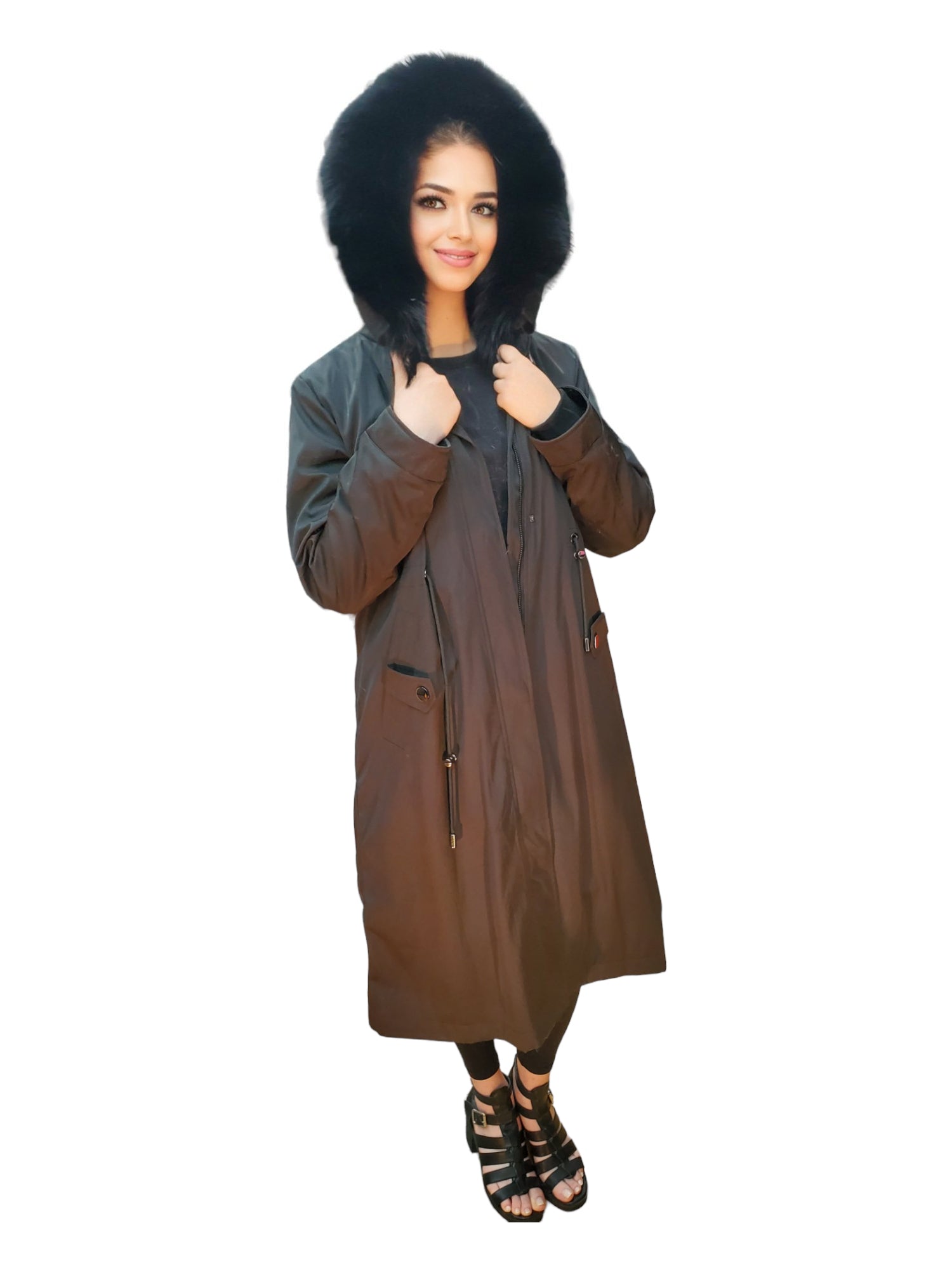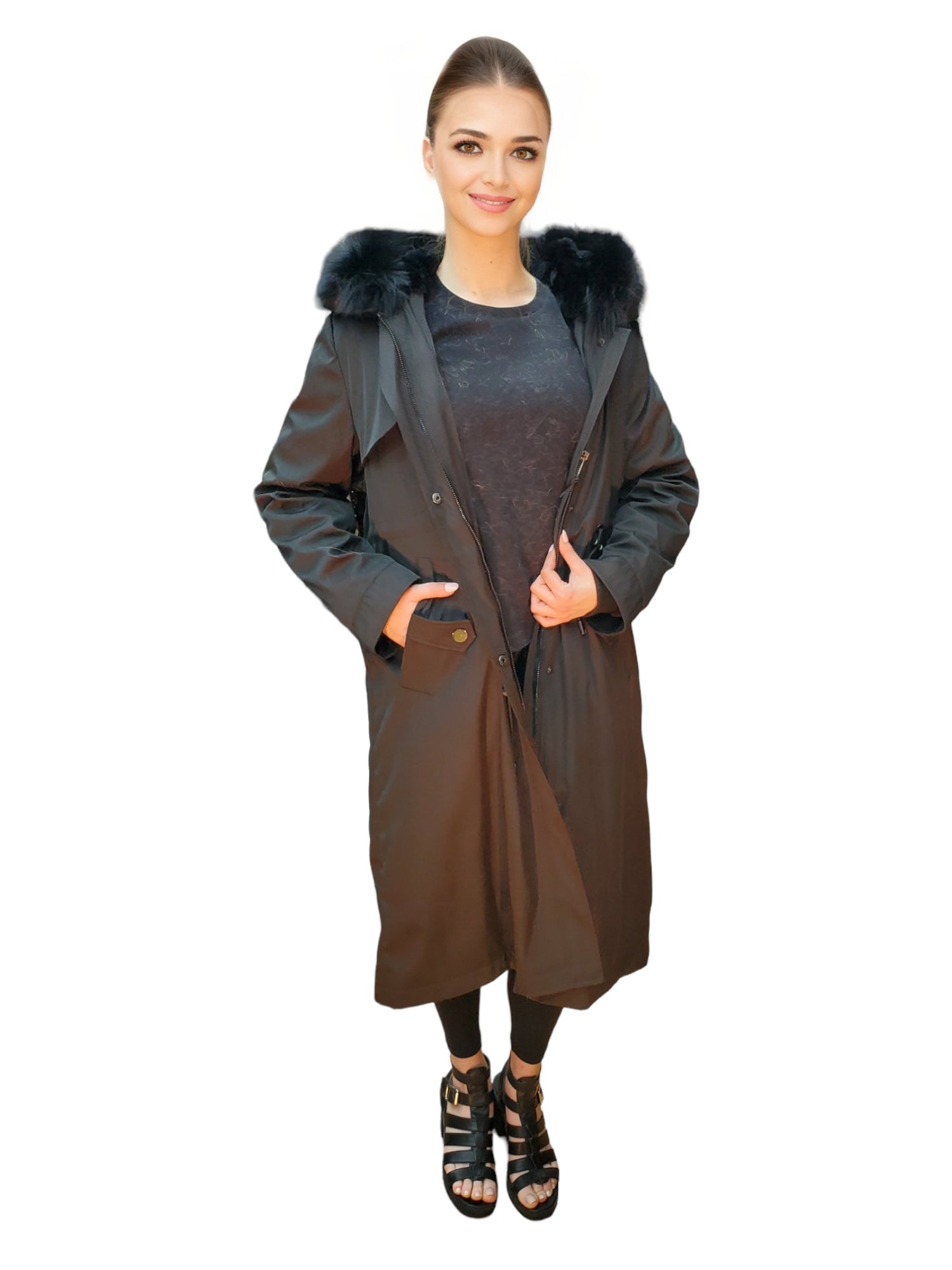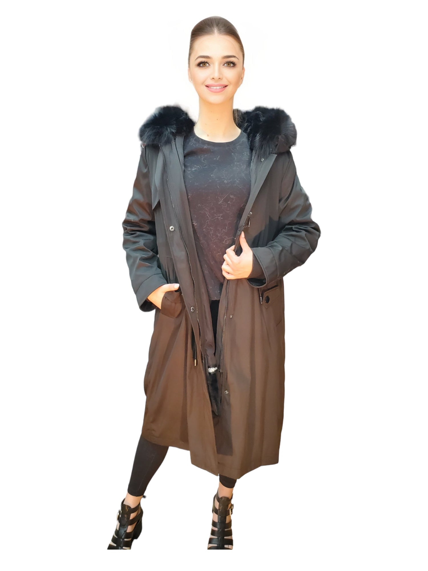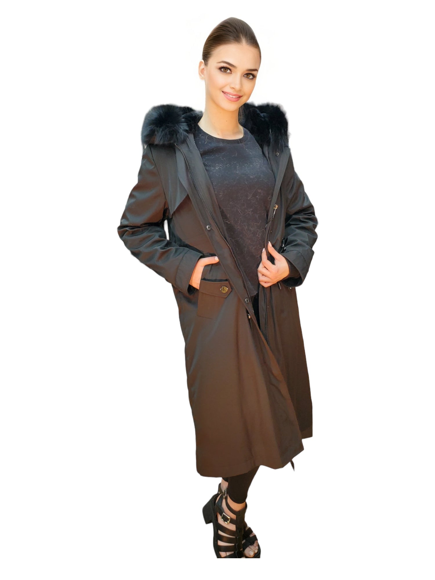 Step out in style with our Hooded Metallic Stroller, featuring Rex Rabbit Lining and Fox Trim for ladies.