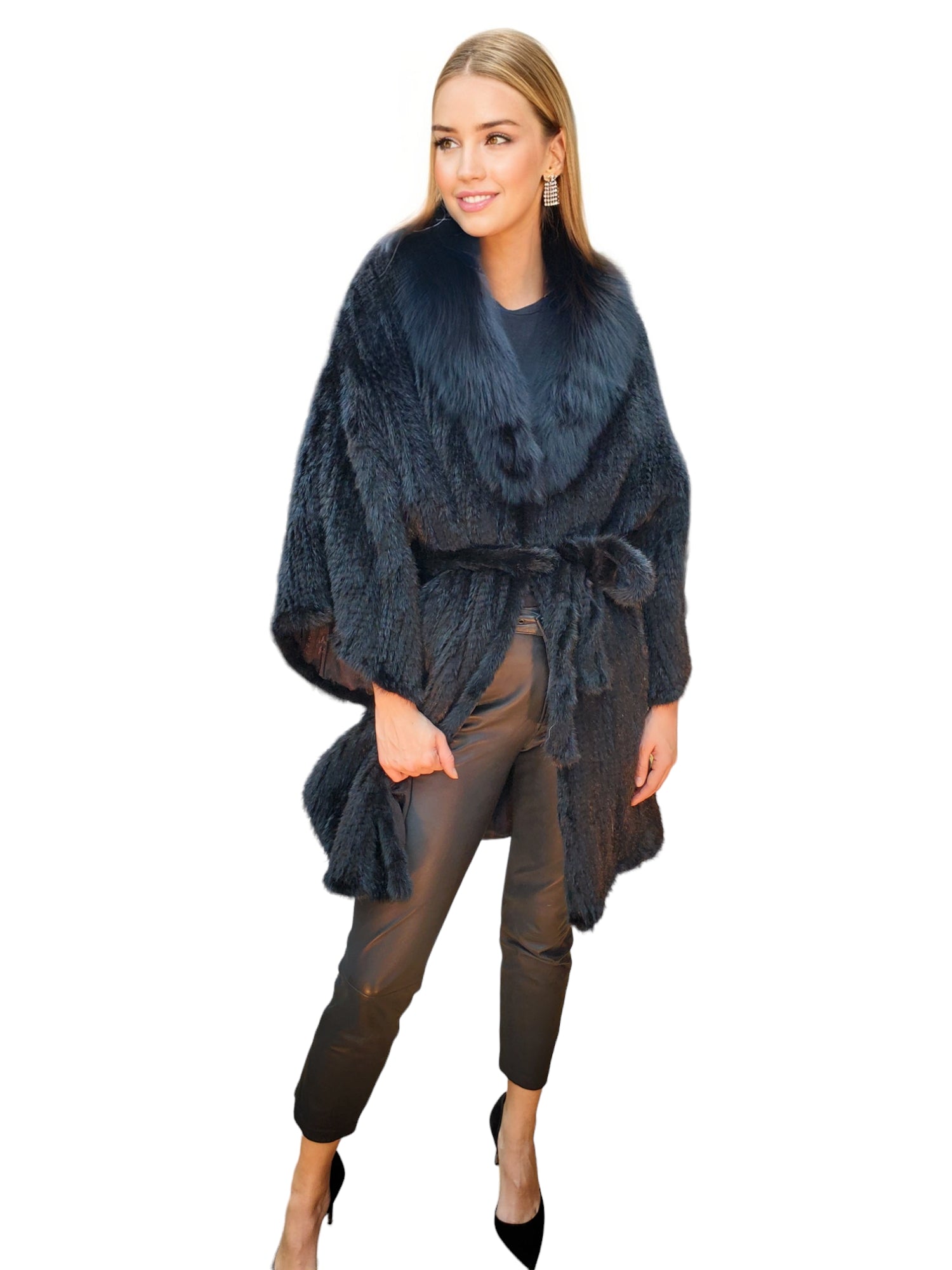 Elevate your style with our Knitted Mink Stroller, featuring a luxurious Fox collar for ladies.