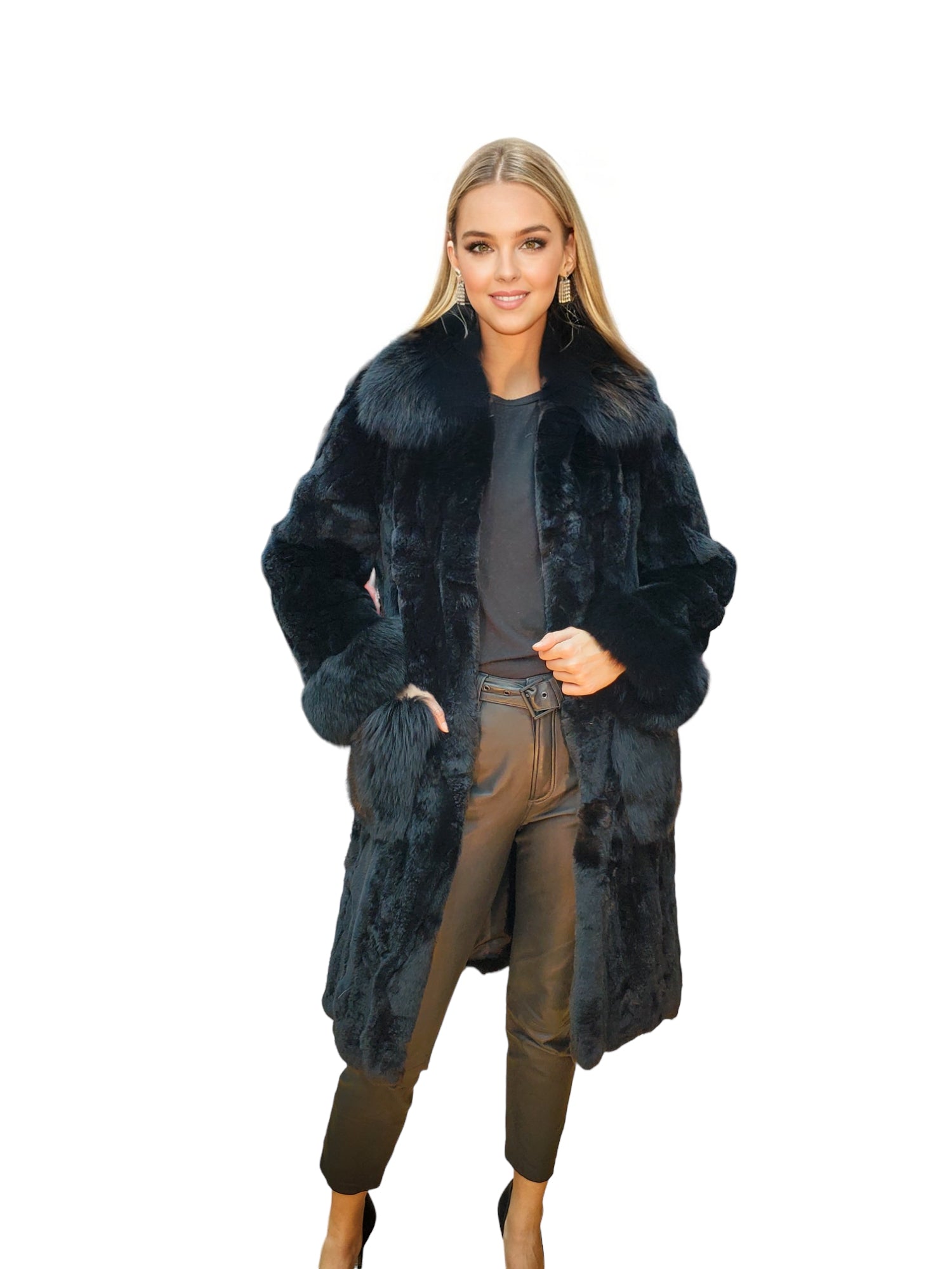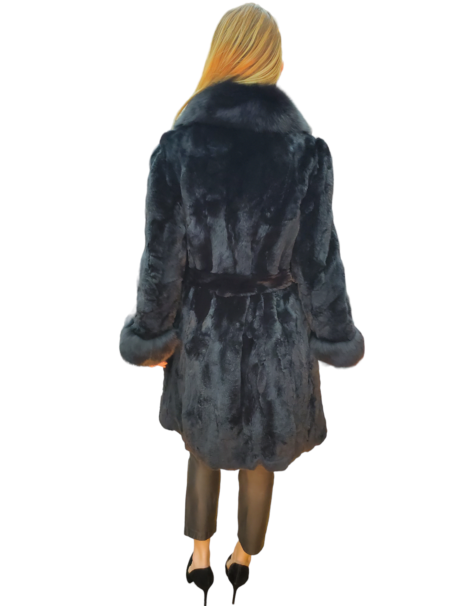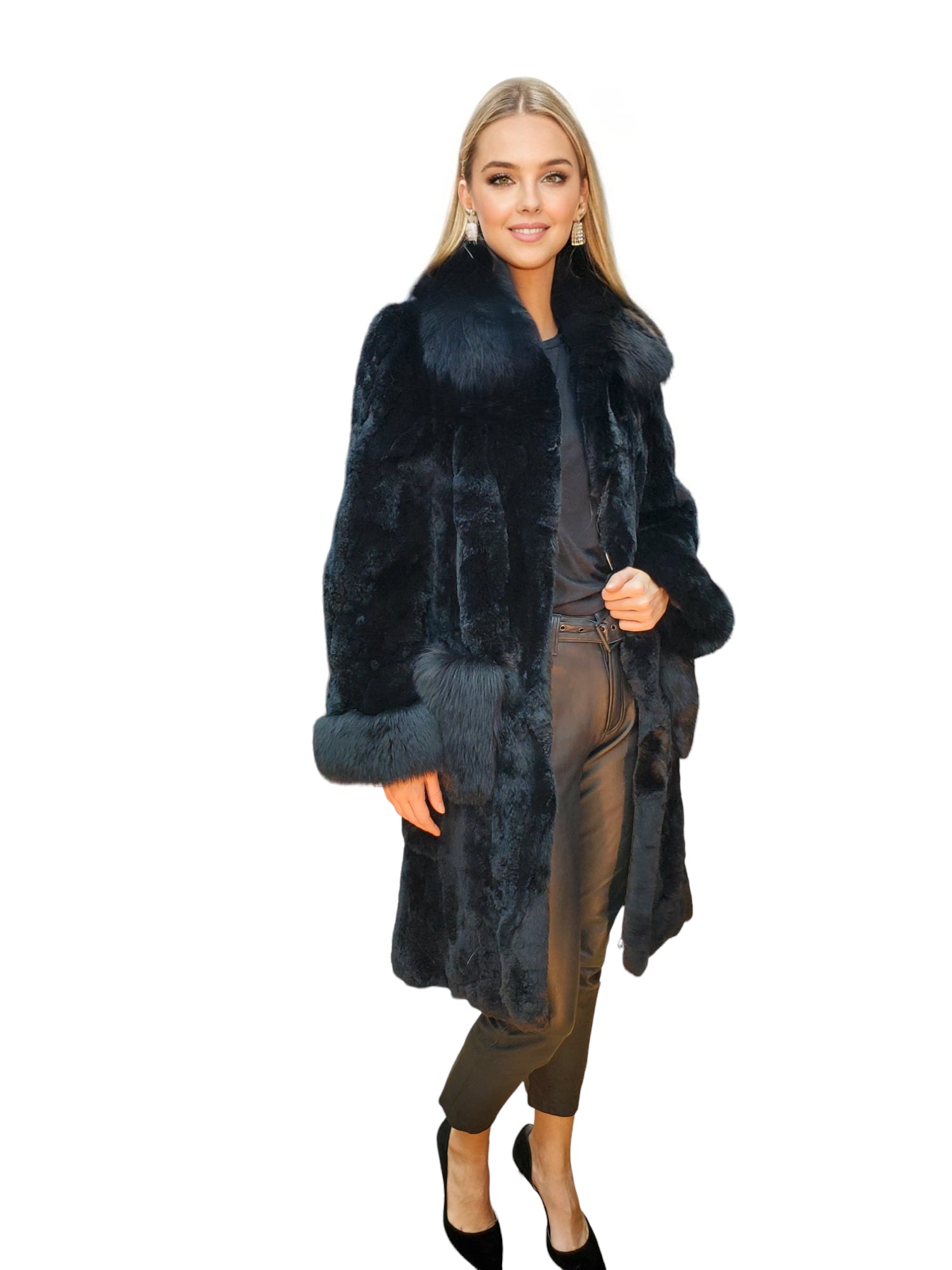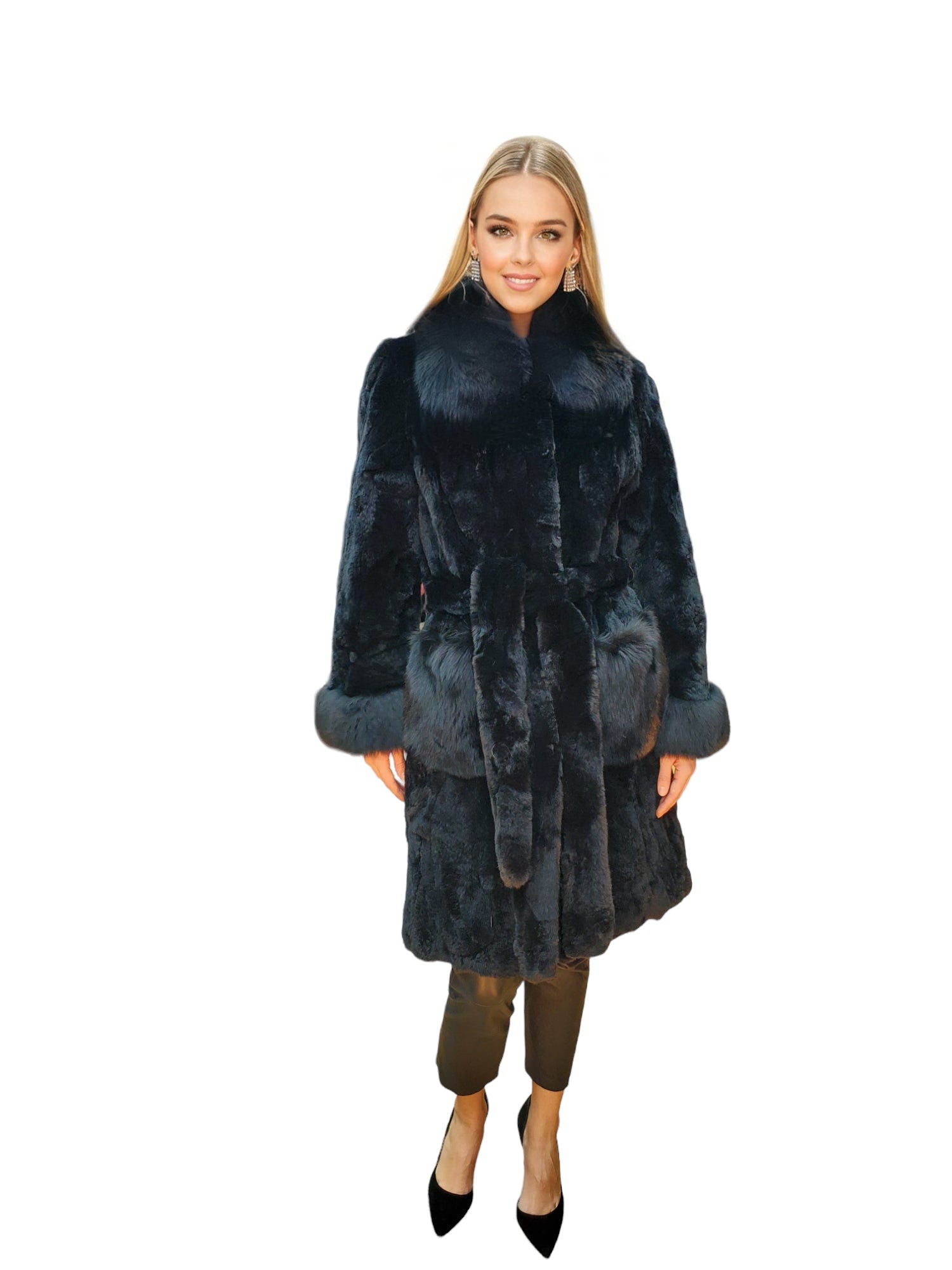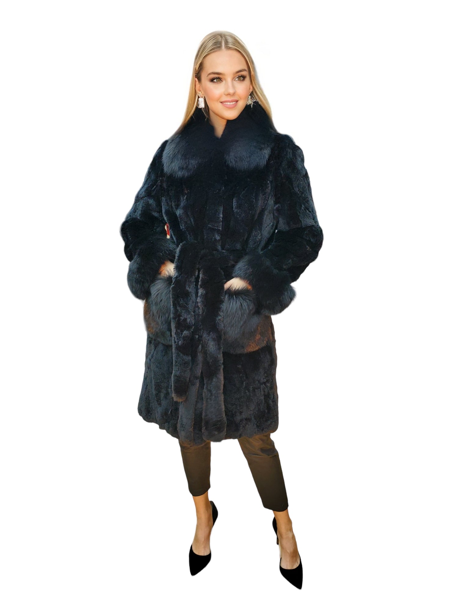 Elegant and cozy, the Sheared Rex Rabbit Stroller with Fox Collar for Ladies combines luxury and warmth.