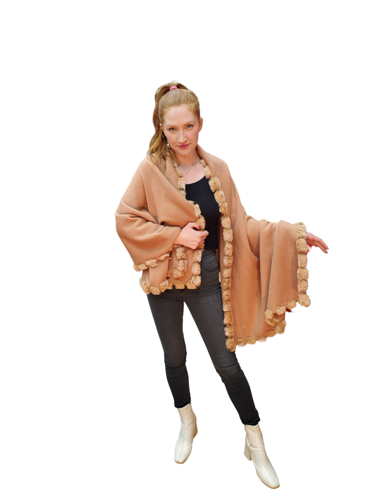 Wrap yourself in elegance with our Wool Blend Shawl featuring luxurious Rex Rabbit Trim for ladies.